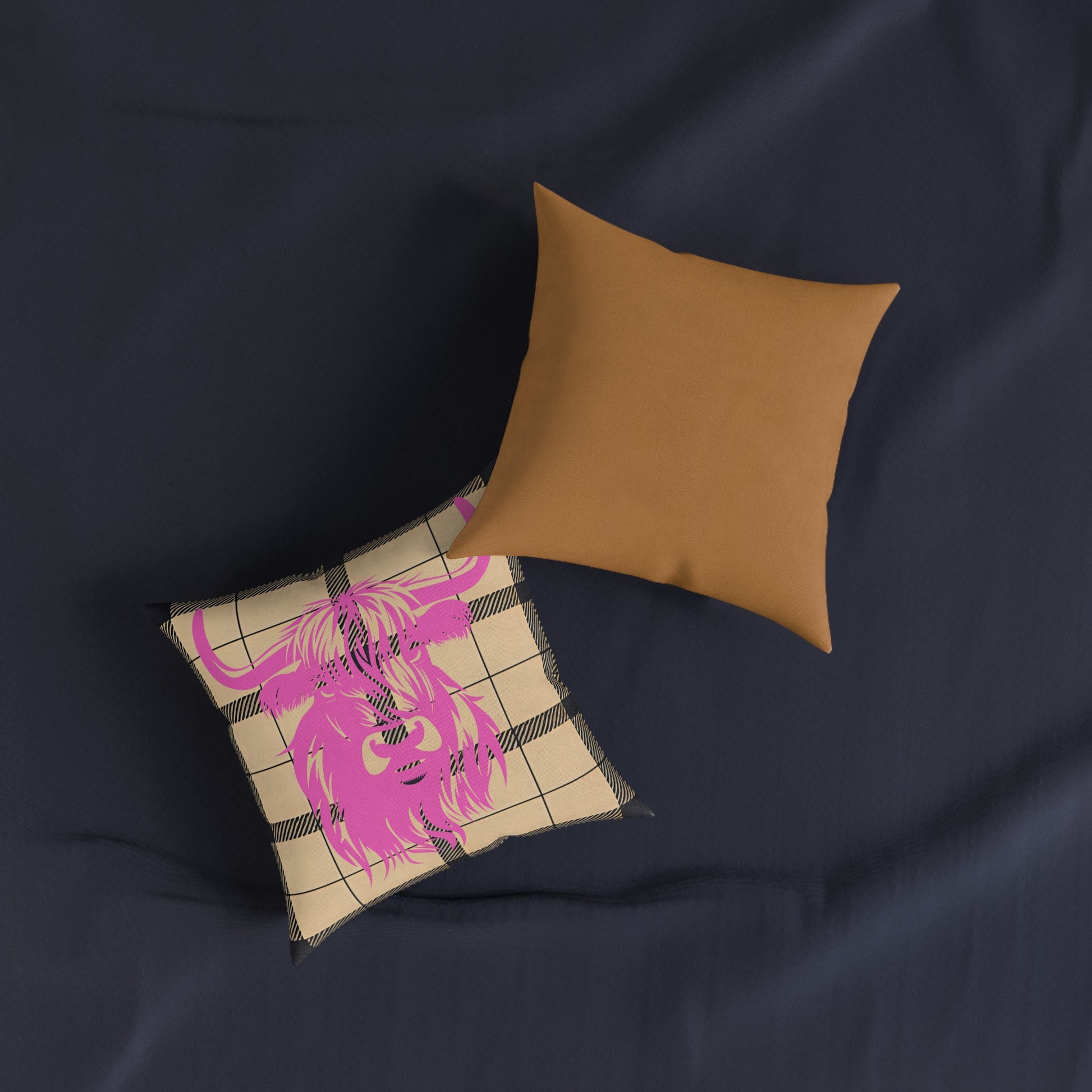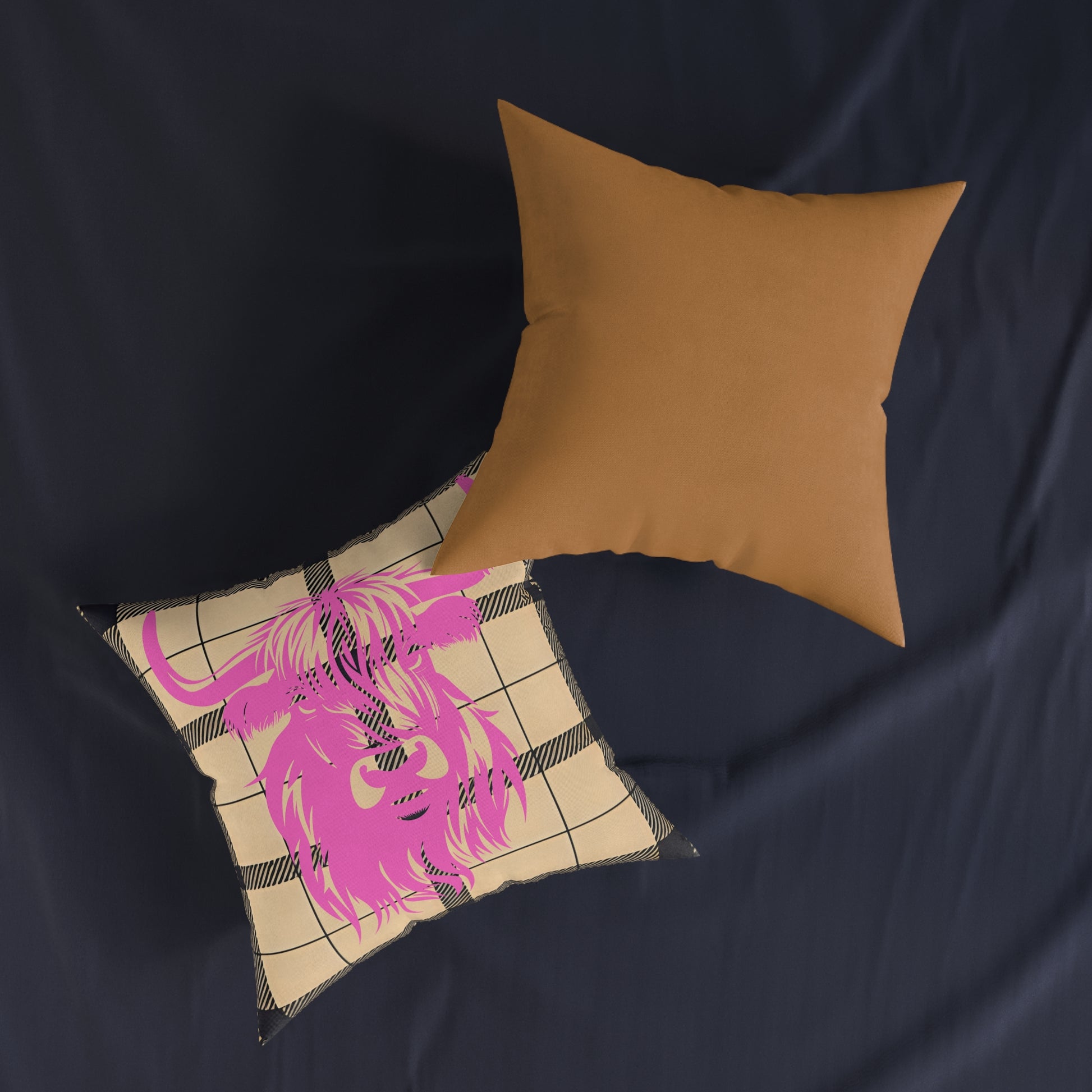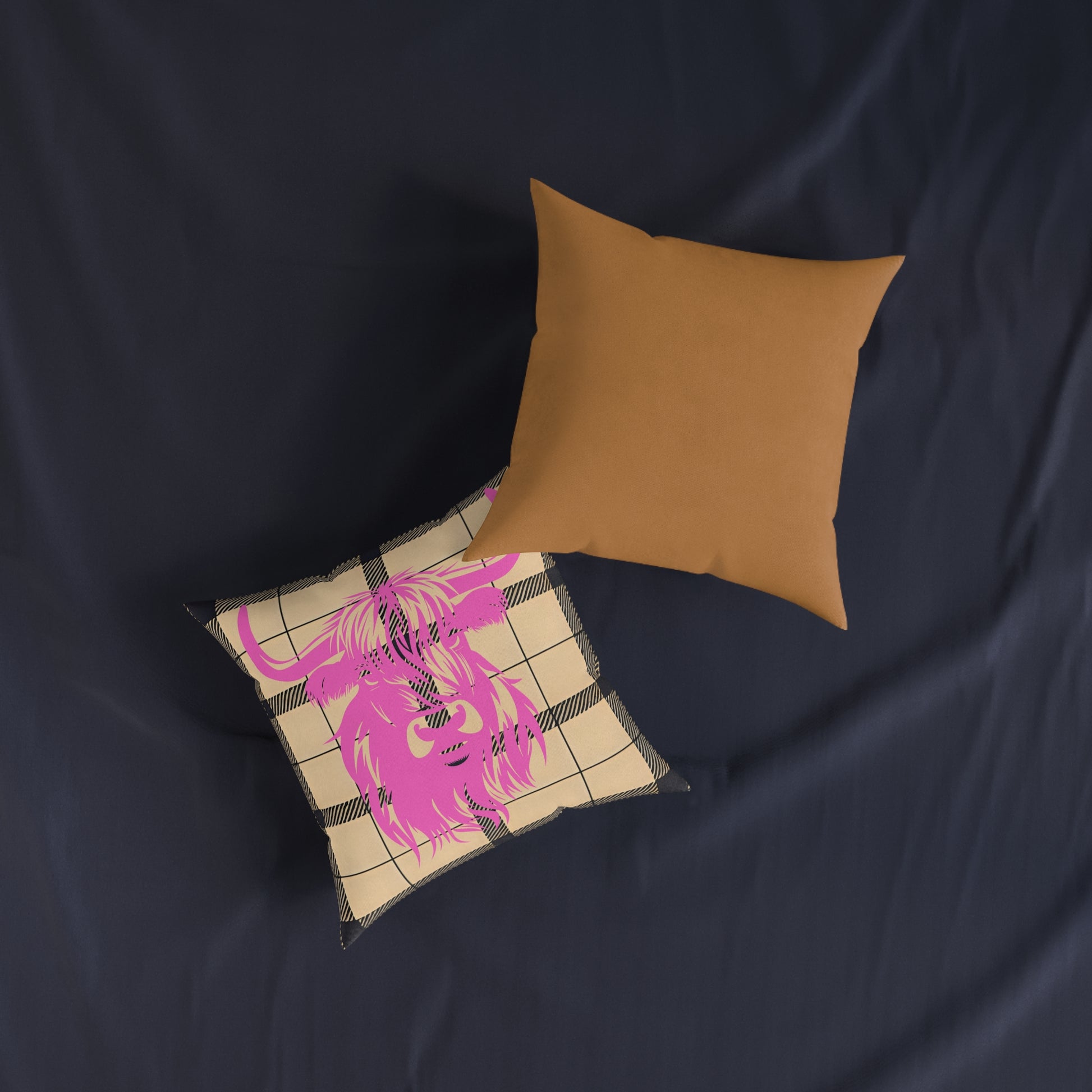 Chic Highland Cow Pillow, Cozy Home Decor, Farmhouse Accent, Personalized Gift, Cute Room Decor, Cow Print Cushion