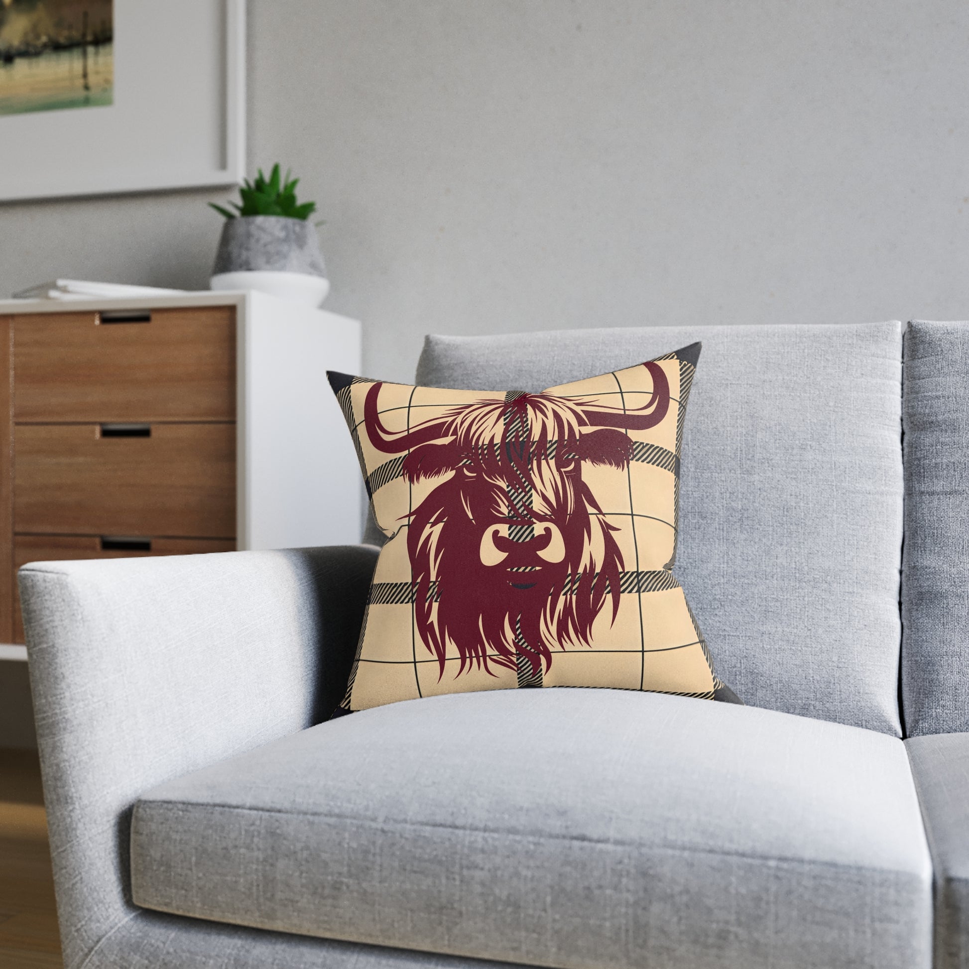 Highland Cow Square Pillow, Cozy Animal Decor, Rustic Home Accent, Farmhouse Gift, Perfect for Couches and Bedrooms